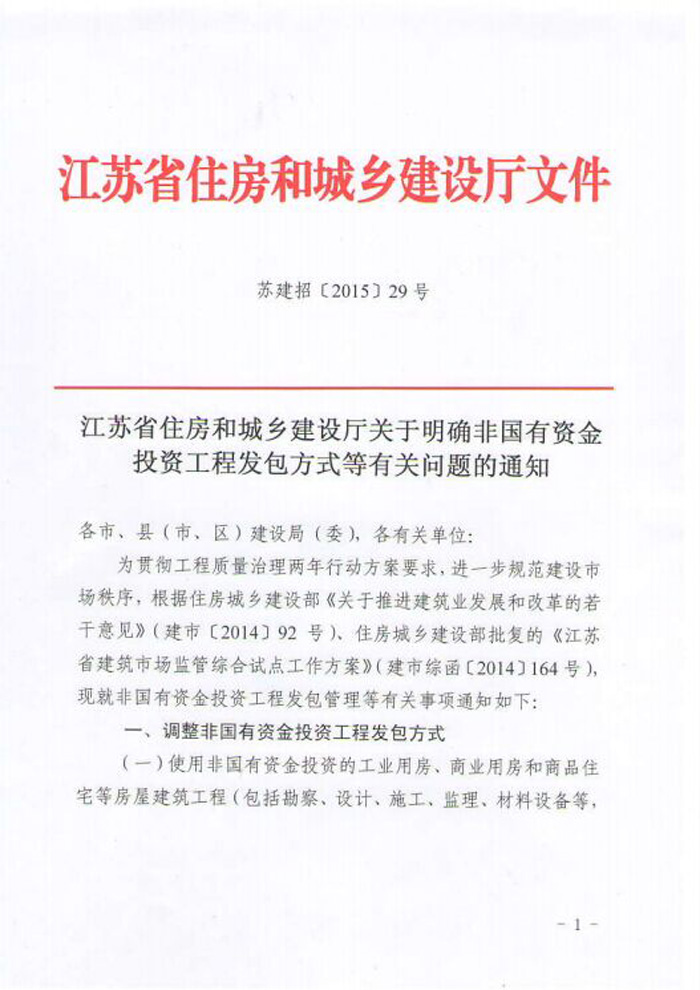 江蘇省住房和城鄉(xiāng)建設(shè)廳關(guān)于明確非國(guó)有資金投資工程發(fā)包方式等有關(guān)問(wèn)題的通知